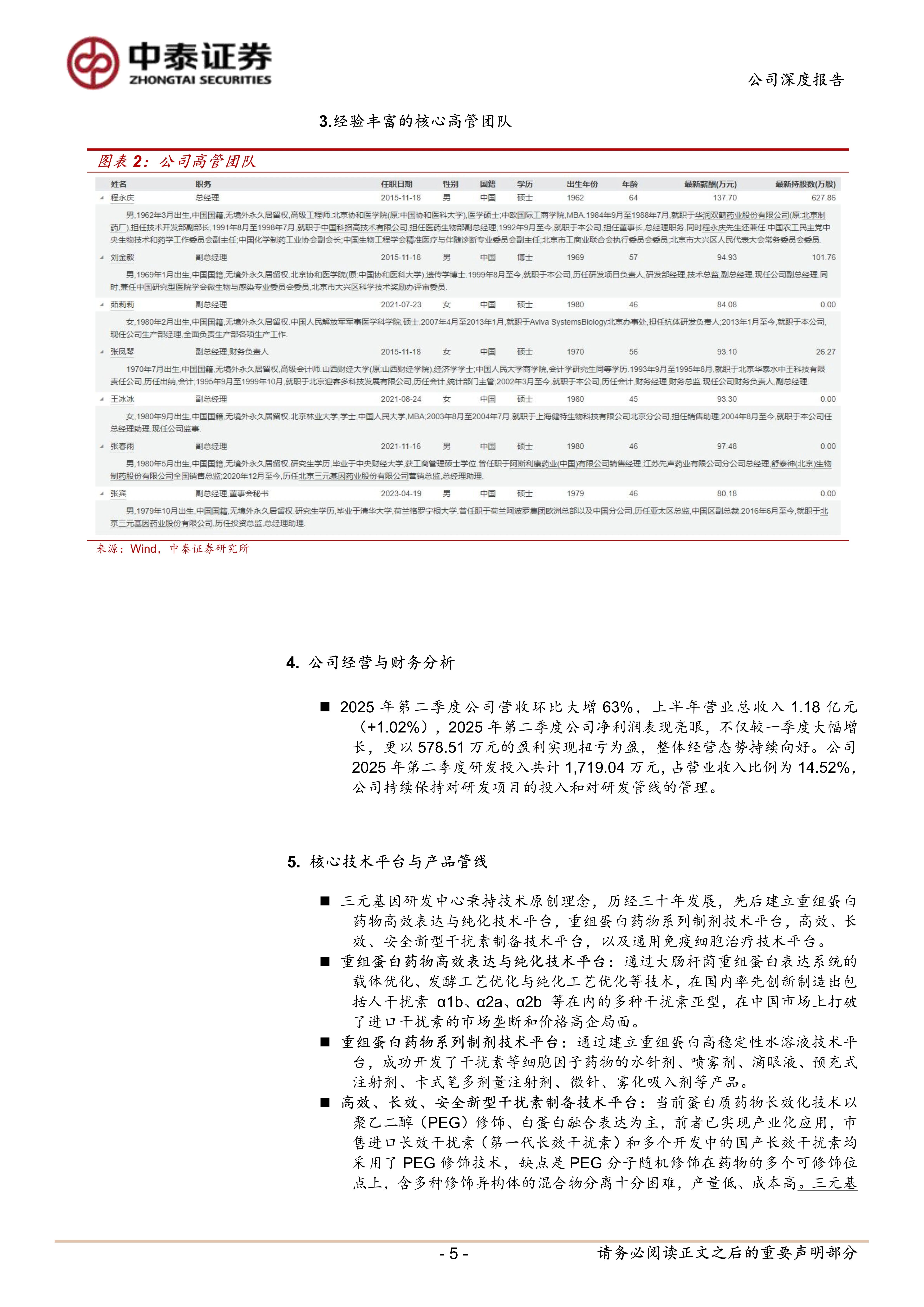 长效干扰素(PEG集成突变体):乙肝功能性治愈突破。三元基因的新型长效干扰素是一款以“培集成干扰素突变体”为核心的1类新药。其分子设计独特,旨在结合集成干扰素的高效性与干扰素α1b的低毒性。技术上的关键突破在于采用了“定点修饰”的PEG化技术,这与竞争产品普遍采用的非定点偶联技术不同,使得药物组分更为单一,有望降低潜在的不良反应并优化药代动力学。该技术拥有公司自主的内部专利。公司重点推进以乙肝功能性治愈为临床终点的方案落地,2025H1新增入组149例。截至2025H1期末,全部940例全基因组检测受试者入组目标已经完成。